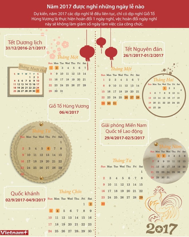 [Infographic] Năm 2017 công chức được nghỉ những ngày lễ nào?