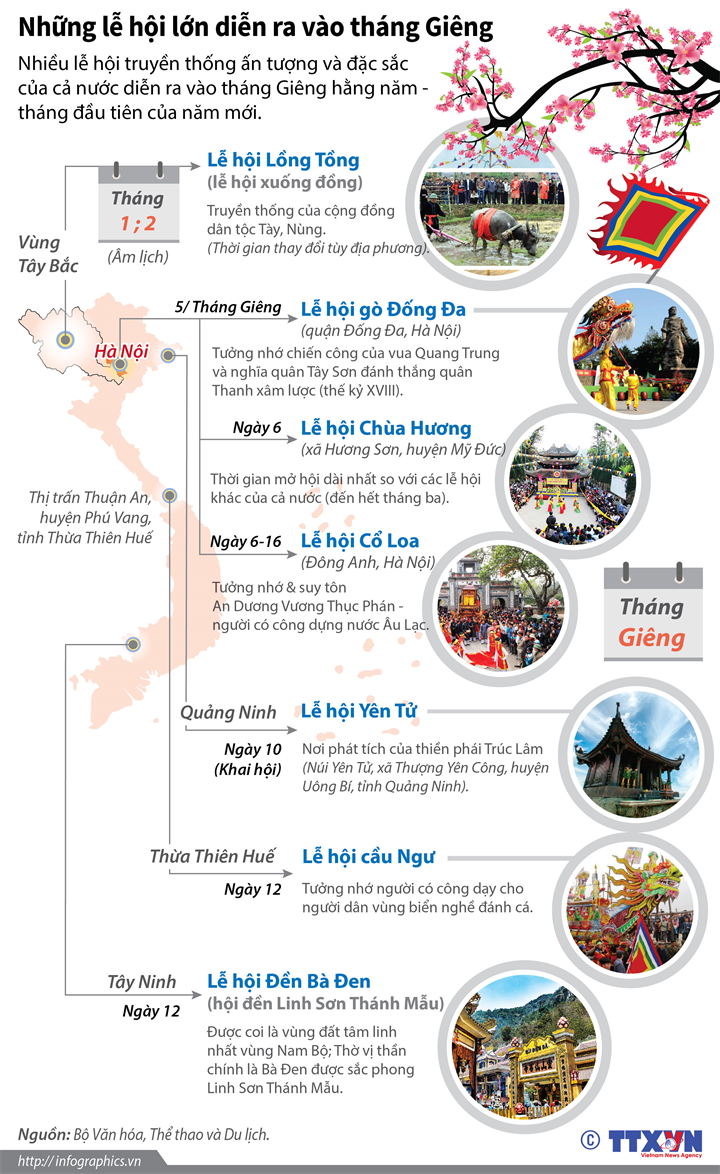 [Infographic] Những lễ hội lớn diễn ra vào tháng Giêng