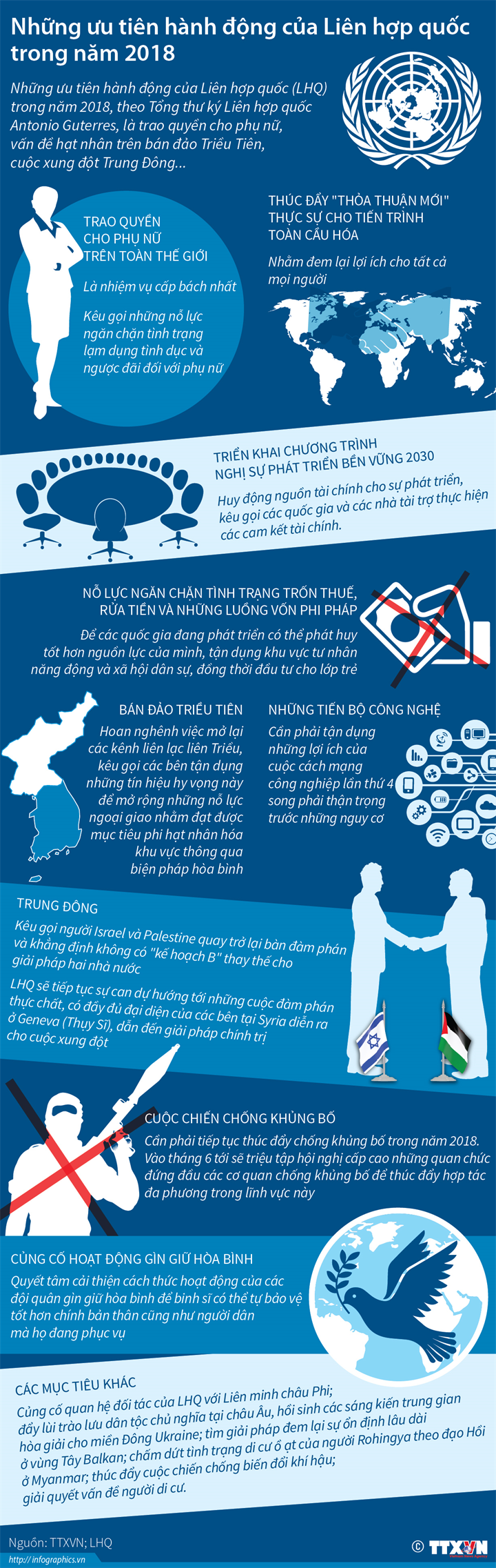 [Infographic] Những ưu tiên hành động của Liên hợp quốc trong năm 2018