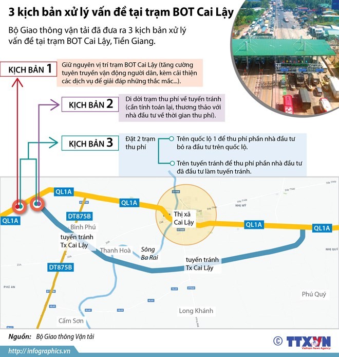 Bộ Giao thông vận tải đã đưa ra 3 kịch bản xử lý vấn đề tại trạm BOT Cai Lậy, Tiền Giang.