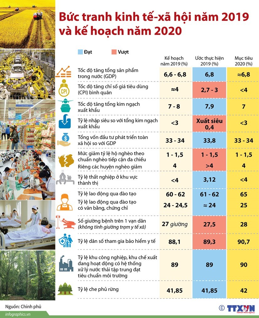 [Infographics] Bức tranh kinh tế-xã hội năm 2019 và kế hoạch năm 2020