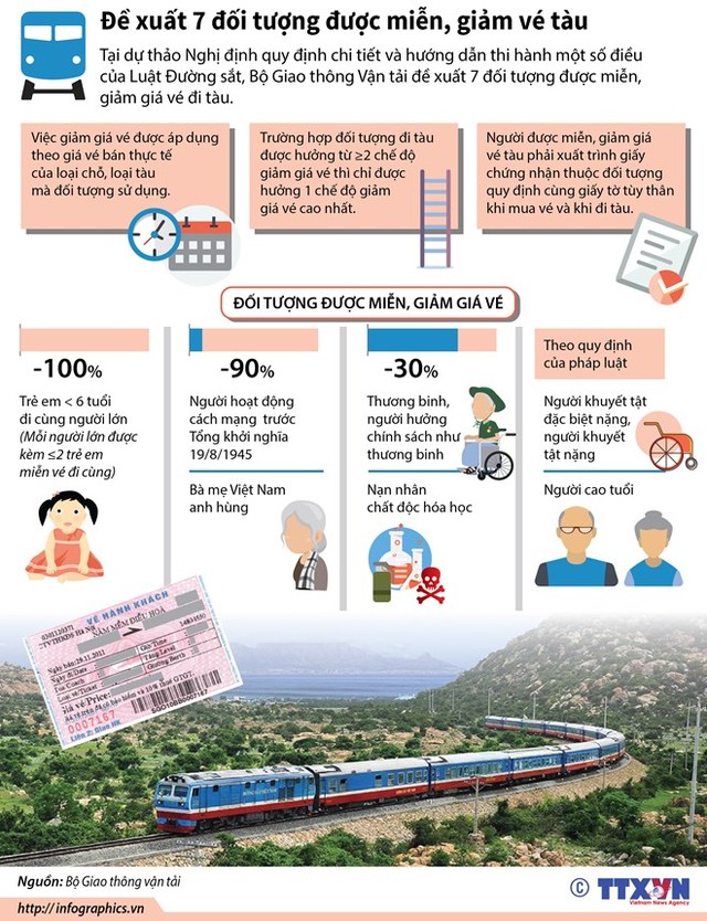 [Infographics] Đề xuất 7 đối tượng được miễn, giảm vé tàu