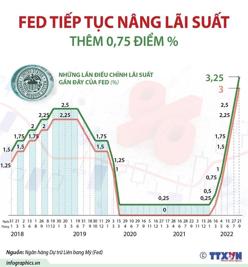 Đây là lần tăng lãi suất thứ 5 trong năm 2022 này và là lần thứ 3 liên tiếp Fed tăng lãi suất 0,75 điểm phần trăm. Biên độ 3-3,25% cũng là lãi suất cao nhất của Fed tính từ tháng 1/2008.