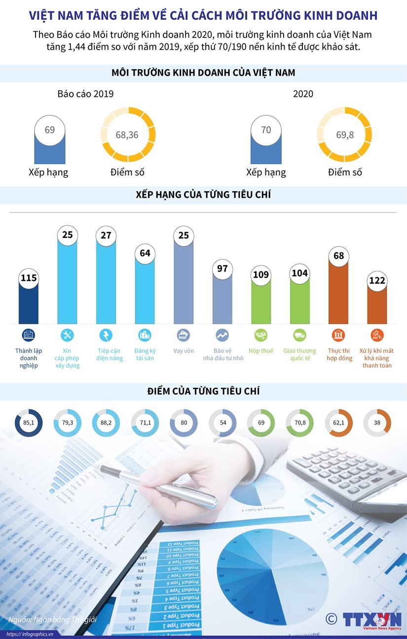 Theo Báo cáo Môi trường Kinh doanh 2020, môi trường kinh doanh của Việt Nam tăng 1,44 điểm so với năm 2019, xếp thứ 70/190 nền kinh tế được khảo sát.