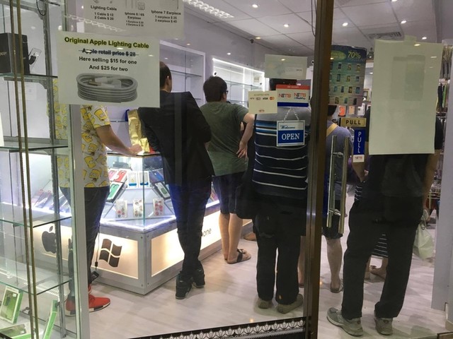 Khác với cảnh xếp hàng tại Singapore, việc mua bán iPhone X ở Hong Kong tỏ ra lộn xộn hơn vì dân buôn tập trung thành "chợ đen" tự phát ngay lề đường để phục vụ cho những người muốn mua sớm. Ảnh: Ezone.