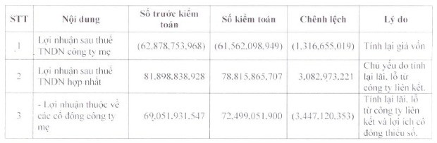 Giải trình lợi nhuận 2013 trước và sau kiểm toán