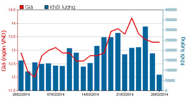 Trong tháng 3 này, giá cổ phiếu KBC được giao dịch trong khoảng từ 12.200 – 14.200 đồng/CP, với lượng giao dịch bình quân mỗi phiên là 1.806.772 đơn vị, giá trị giao dịch bình quân mỗi phiên trên 23,84 tỷ đồng.