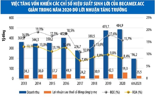 Việc liên tục tăng vốn chủ sở hữu và tăng cường vay nợ để mở rộng đầu tư khiến các chỉ số kinh doanh của Becamex ACC chịu nhiều áp lực pha loãng.