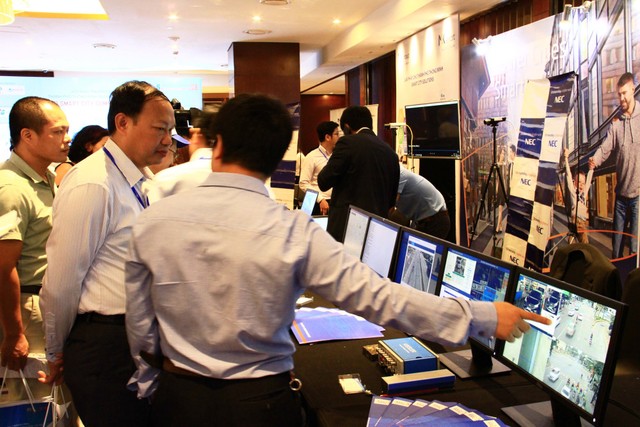 Triển lãm giới thiệu các sản phẩm, giải pháp công nghệ tiên tiến cho thành phố thông minh bên lề Hội nghị. Ảnh: Thành Nguyễn.