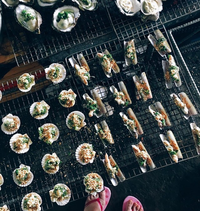 Khu bán đồ tươi sống không quá rộng, chỉ khoảng vài chục sạp hàng nhưng lại ghi điểm bởi sự đa dạng của các loại tôm, cua, sò lông, hàu, mực... Mỗi loại được đặt trong thau nhựa có ống dẫn khí để giữ độ tươi sống. "Mình ấn tượng với khu chợ bởi có quá nhiều loại hải sản hấp dẫn, tôm bật tanh tách trong thau. Tuy nhiên, bạn nên tìm hiểu và khéo léo trong việc trả giá các món ăn ở đây để tránh bị nói thách", Trần Anh (TP.HCM) chia sẻ kinh nghiệm của mình.