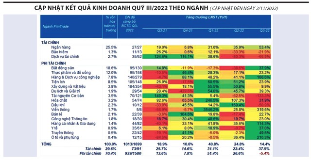 Cập nhật kết quả kinh doanh theo ngành của FiinGroup cho thấy, phần lớn doanh nghiệp địa ốc vẫn tăng trưởng dương trong quý III/2022, nhưng đa phần không tới từ hoạt động kinh doanh chính và so với mức nền thấp ở cùng kỳ năm trước - giai đoạn dịch Covid-19 bùng phát mạnh.