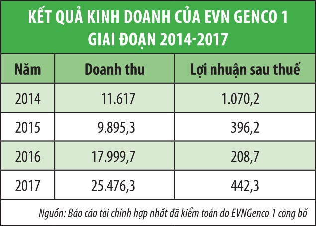 Trở lại với EVNGenco1, đơn vị này thể hiện phong độ kinh doanh giảm sút trước cổ phần hóa. Nếu như năm 2014, Tổng công ty ghi nhận khoản lãi hơn 1.070 tỷ đồng, thì năm 2015, lợi nhuận sút giảm mạnh xuống còn 396,2 tỷ đồng. Hiệu quả kinh doanh của Tổng công ty tiếp tục đi lùi trong năm 2016, khi chỉ đạt 208,7 tỷ đồng và phục hồi phần nào trong năm 2017 với mức lãi 442,3 tỷ đồng… Tính trên mức vốn điều lệ 17.943 tỷ đồng, tỷ suất lợi nhuận trên vốn của EVNGenco1 trong năm 2017 chỉ đạt chưa đầy 2,4%.