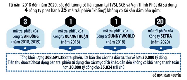 Nguyễn Tiến Thành (Tổng giám TVSI, đã mất) có vai trò chỉ đạo, điều hành TVSI để lập hồ sơ tư vấn, phát hành trái phiếu, thực hiện các trình tự, thủ tục, hồ sơ phát hành trái phiếu; Hồ Bửu Phương (Phó tổng giám đốc Vạn Thịnh Phát) làm đầu mối hướng dẫn bộ phận kế toán các công ty thuộc Tập đoàn chuẩn bị hồ sơ pháp lý, báo cáo tài chính và thực hiện các giao dịch chuyển tiền theo phương án dòng tiền.