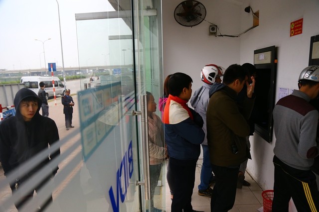 Khu vực đặt ATM tại cổng công nghiệp Bắc Thăng Long (Đông Anh - Hà Nội) của các ngân hàng lúc nào cũng đông nghẹt người xếp hàng chờ rút tiền