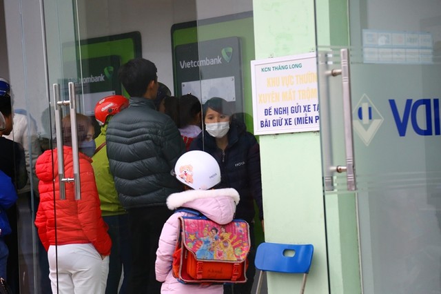 (ĐTCK) Rất nhiều công nhân khu công nghiệp Thăng Long đến kỳ lĩnh lương và thưởng Tết đã đồng loạt ra ATM để rút tiền phải chờ rất lâu mới đến lượt.