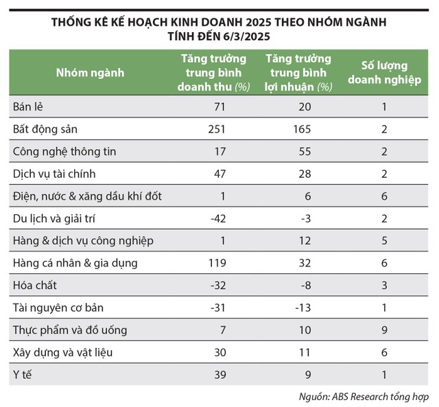 Theo dõi diễn biến gần đây, chúng tôi nhận thấy một loạt doanh nghiệp vốn hóa lớn đã đưa ra kế hoạch kinh doanh năm 2025 tăng trưởng khá cao so với năm 2024, trong đó phải kể đến là các doanh nghiệp công nghệ thông tin và dệt may, được hỗ trợ bởi yếu tố vĩ mô trong nước và quốc tế (xem bảng). Do đó, mùa đại hội cổ đông năm nay không chỉ có khả năng tạo ra những nhịp sóng ngắn hạn trên thị trường, mà còn có thể đặt nền móng cho xu hướng tăng trưởng dài hơn.