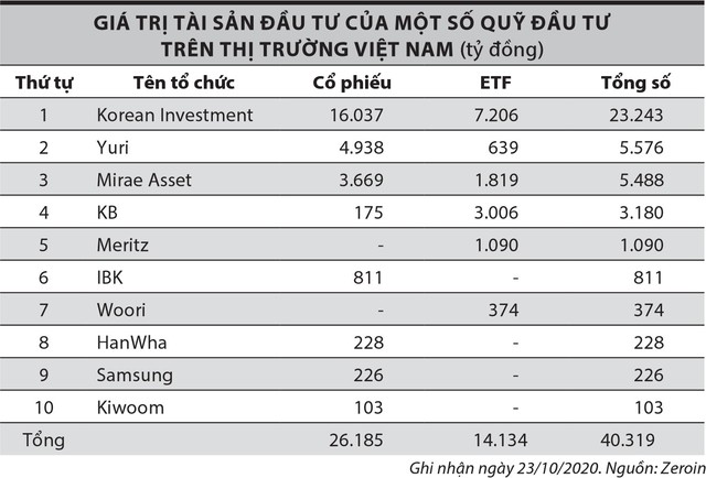 Lâu nay, dòng vốn Hàn Quốc đầu tư gián tiếp vào Việt Nam chủ yếu thông qua các quỹ đầu tư, quỹ ETF (dẫn vốn từ các nhà đầu tư cá nhân tại Hàn Quốc).