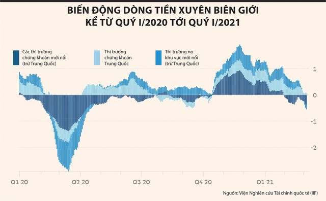 Số liệu theo dõi dòng vốn toàn cầu do Viện Nghiên cứu tài chính Quốc tế (Institute of International Finance – IIF) cho thấy, các thị trường mới nổi chứng kiến đợt bán ròng đầu tiên kể từ tháng 10/2020 vào tháng 3/2021.