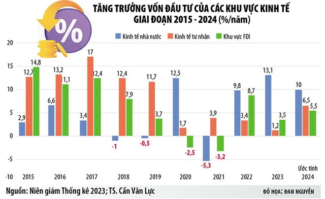Theo khảo sát của TS. Cấn Văn Lực, số vốn thực góp chỉ chiếm khoảng 10-15% vốn đăng ký trong thời gian ban đầu. Nghĩa là, dù số vốn đăng ký của các doanh nghiệp mới trong 7 tháng đầu năm 2024 đạt trên 854.600 tỷ đồng, tăng 2,4% so với cùng kỳ năm ngoái, nhưng số vốn đã chảy vào nền kinh tế chỉ khoảng 85.000-90.000 tỷ đồng.
