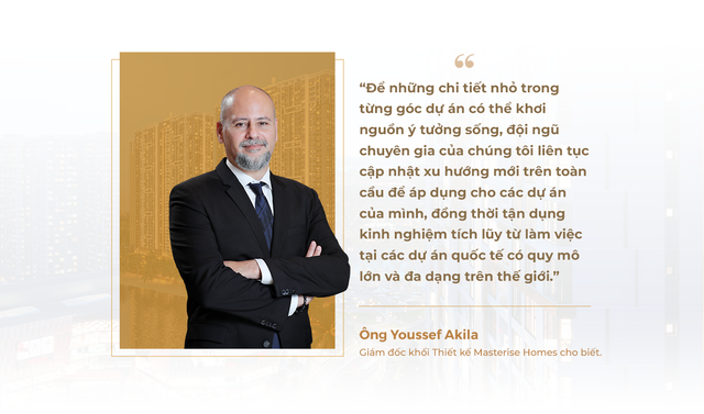 Cũng như các chuyên gia khác tại Masterise Homes, ông Youssef trước đây đã làm việc cho các nhà phát triển BĐS lớn nhất khu vực Trung Đông và hợp tác với các thương hiệu BĐS cao cấp quốc tế như Trump, Paramount, Versace và Fendi. “Kinh nghiệm về lĩnh vực kinh doanh phát triển BĐS, kết hợp với chuyên môn thiết kế giúp tôi hình thành cái nhìn bao quát hơn về ngành”, ông cho biết thêm.