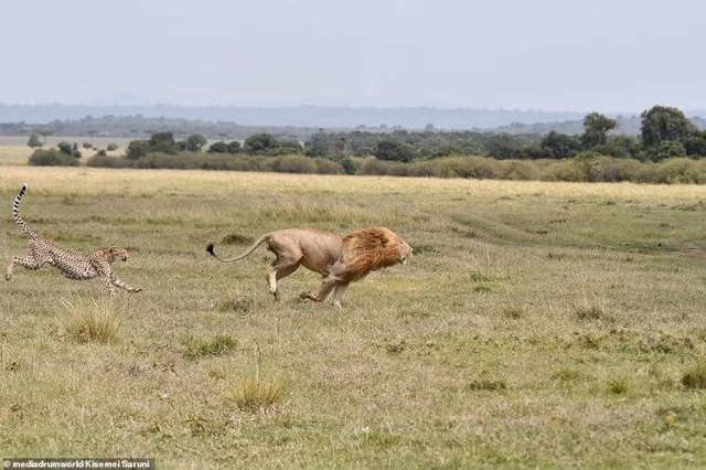 Nhiếp ảnh gia Kisemei Saruni, 35 tuổi, trong chuyến đi đến Khu bảo tồn quốc gia Maasai Mara ở Kenya đã tình cờ lưu lại khoảnh khắc báo săn mẹ bất chấp hiểm nguy tính mạng để bảo vệ đàn con nhỏ khỏi nanh vuốt của sư tử.