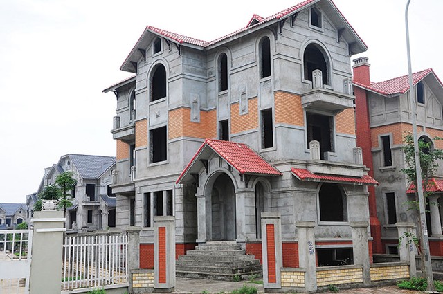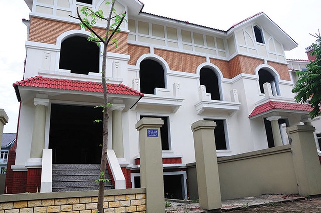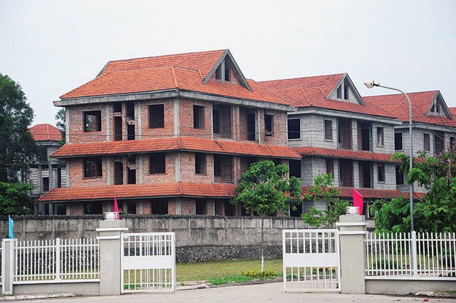 Dãy biệt thự liền kề đã tương đối hoàn thiện, nhưng chưa có người đến ở