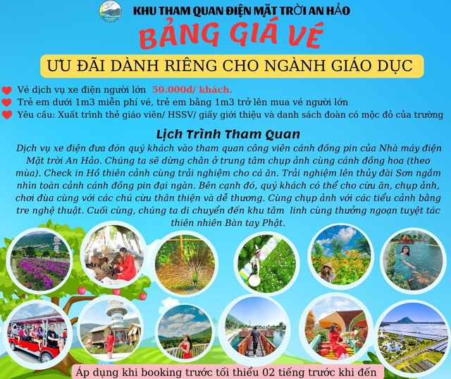 Việc giảm sâu phí vào cổng thể hiện sự quan tâm của An Hảo trong việc tạo điều kiện thuận lợi tối đa về đa dạng hóa hoạt động giáo dục, cho phép các bạn trẻ được trải nghiệm tham quan hệ thống điện năng lượng mặt trời, cũng như tận hưởng vẻ đẹp quá đỗi thanh bình của thiên nhiên. Nhờ điều này, họ sẽ cảm nhận được rằng bất kể khó khăn đến đâu, thế giới xung quanh vẫn luôn tươi đẹp và chào đón mọi người.