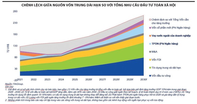 Để đạt mục tiêu tăng trưởng hai con số trong giai đoạn 2026 - 2030, dự kiến tổng vốn đầu tư toàn xã hội phải đạt khoảng 38,5 triệu tỷ đồng (tương đương 40% GDP hiện nay). Muốn huy động được nguồn lực lớn như vậy, cần có cách tiếp cận đồng bộ cả trong ngắn hạn và dài hạn.