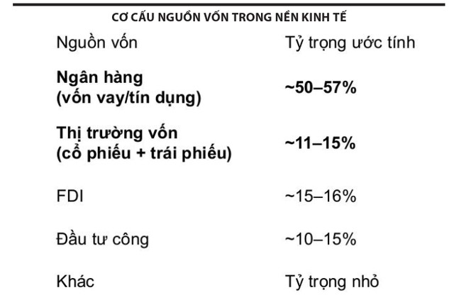 Quy mô tín dụng/GDP của Việt Nam hiện đã ở mức cao, phản ánh vai trò rất lớn của hệ thống ngân hàng trong việc dẫn vốn cho nền kinh tế. Khi nhu cầu vốn tiếp tục gia tăng trong bối cảnh kinh tế toàn cầu nhiều biến động, áp lực lên hệ thống tài chính cũng sẽ tích tụ nhiều hơn nếu cấu trúc vốn không được đa dạng hóa kịp thời.