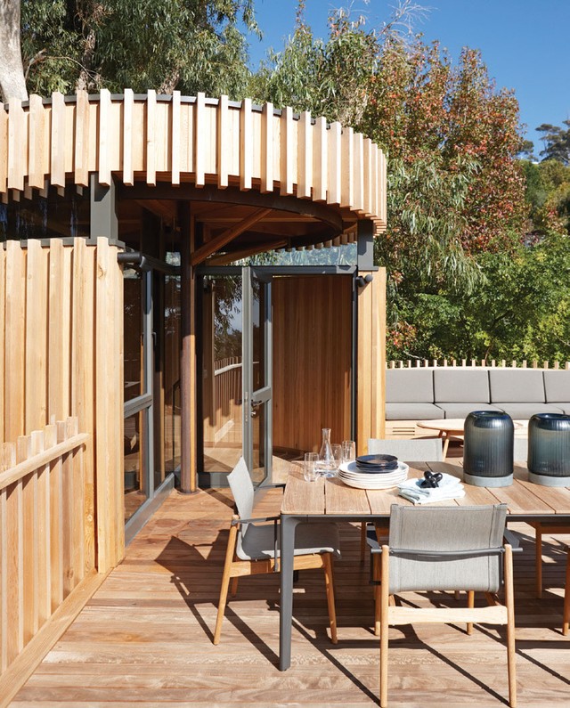 Các thanh gỗ được gia công khéo léo để qua thời gian có thể có màu sắc chính xác như những thân cây tại khu vực xung quanh.