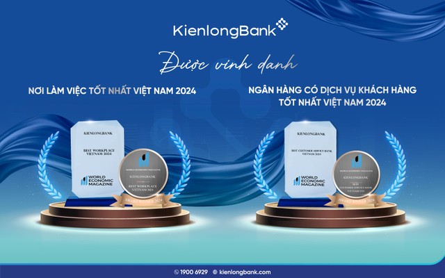 Không dừng tại đây, vượt qua nhiều đối thủ xứng tầm khác, KienlongBank còn vinh dự được góp mặt trong danh sách những “Ngân hàng có Dịch vụ khách hàng tốt nhất Việt Nam 2024”. Đây là thành quả cho hành trình cung cấp những dịch vụ tận tâm, đưa đến những trải nghiệm xứng tầm được cá nhân hoá hoàn hảo cho từng khách hàng khi tiếp cận các sản phẩm Tài chính - Ngân hàng mà KienlongBank đã nỗ lực xây dựng trong chiến lược phát triển giai đoạn 2021 - 2025.