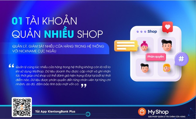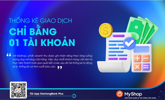 Sớm nhìn nhận ra các vấn đề này, KienlongBank triển khai và tích hợp bộ giải pháp Quản lý tài chính cửa hàng - MyShop trên ứng dụng KienlongBank Plus. Đây sẽ là lời giải giúp các cửa hàng có thể dễ dàng ghi nhận doanh thu, quản lý tài chính, theo dõi dòng tiền đồng thời gia tăng trải nghiệm cho khách hàng. Trong bộ giải pháp đó, các kênh TTKDTM vẫn sẽ đóng vai trò xuyên suốt nhưng đổi lại được tối ưu hơn để phát huy hết tác dụng vốn có của nó.