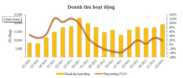 (ĐTCK) Theo số liệu được Kirin Capital tập hợp từ 51 công ty chứng khoán, doanh thu hoạt động toàn ngành chứng khoán đã tiệm cận vùng đỉnh được thiết lập trong năm 2021 – 2022 khi kết thúc quý II/2024 đạt 19.285,3 tỷ đồng, tăng 11,2% so với quý đầu năm và tăng tới 21,5% so với cùng kỳ năm ngoái.