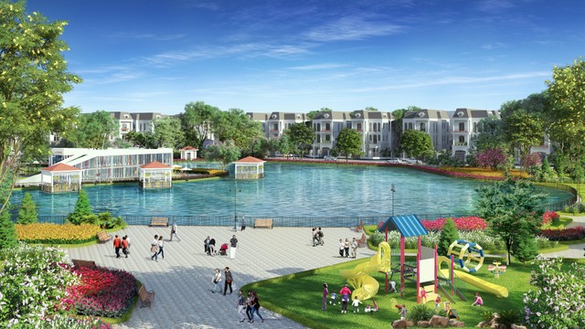 Hồ điều hòa rộng 4.000 m2 tạo lên một không gian xanh mát cho Khu đô thị Kosy Eden Bắc Giang