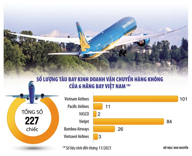 Theo Cục Hàng không Việt Nam, tổng thị trường vận tải hàng không năm 2024 đạt xấp xỉ 80,3 triệu lượt khách và 1,16 triệu tấn hàng hóa, tăng tương ứng 7,1% về hành khách và 4,8% về hàng hóa so với năm 2023. Trong đó, các hãng hàng không Việt Nam vận chuyển khoảng 58 triệu lượt khách, tương đương năm 2023.