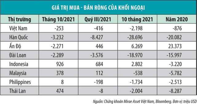 Do vậy, thị trường Việt Nam không còn là điểm đến hấp dẫn của khối ngoại, trái ngược với đánh giá cao về cơ hội từ kênh đầu tư chứng khoán của các cá nhân trong nước (10 tháng đầu năm 2021 có gần 1,1 triệu tài khoản chứng khoán mở mới, dòng tiền nội mạnh mẽ đã thúc đẩy chỉ số chứng khoán vượt đỉnh lịch sử).