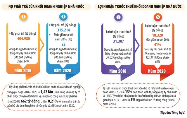 So với năm 2019, một số công ty mẹ có lãi phát sinh trước thuế năm 2020 giảm sâu như Công ty mẹ - Tổng công ty Quản lý bay Việt Nam có lãi phát sinh trước thuế giảm 99%, doanh thu giảm 56%. Công ty mẹ - Tập đoàn công nghiệp than - khoáng sản Việt Nam lãi phát sinh trước thuế giảm 48%, doanh thu giảm 7%...