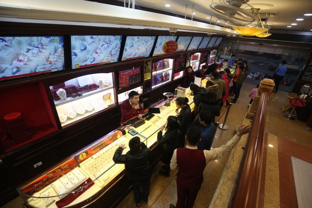 Chiều tối ngày 24/2, tại các cửa hiệu vàng trên phố Cầu Giấy đã có rất đông người đến mua vào