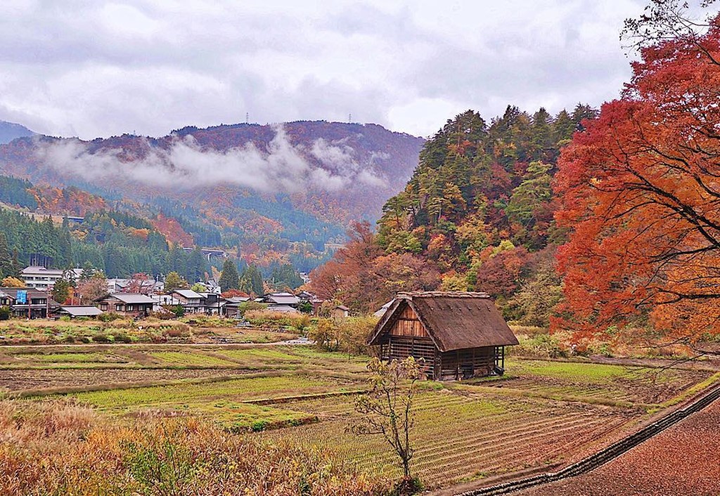 Mùa đông, Shirakawago chìm trong sắc nâu và trắng, ngôi làng khoác lên diện mạo đa sắc khi bước vào mùa thu. Những tán lá xanh, vàng, đỏ đan xen bên ruộng lúa, những ngôi nhà lá nâu cũ kỹ ẩn hiện, tạo khung cảnh đẹp tựa vùng đất thần tiên trong chuyện cổ tích.
