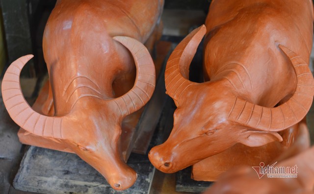 Trâu đất được nặn đủ các kích cỡ tùy vào khách hàng đặt mua. |