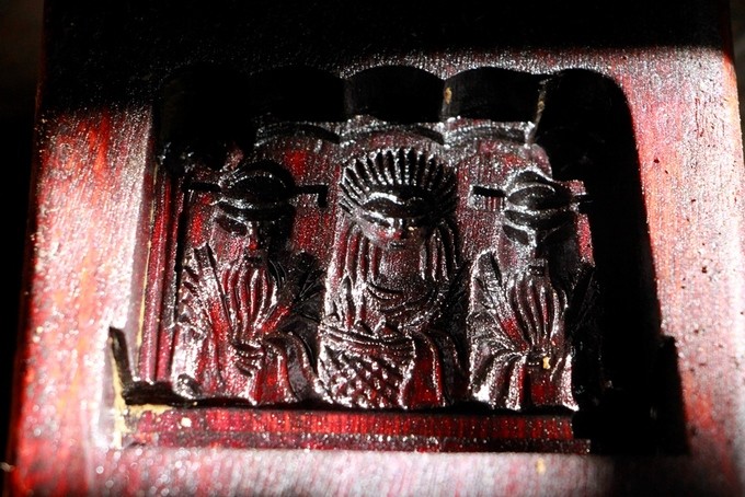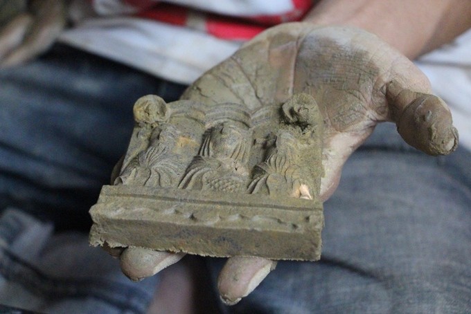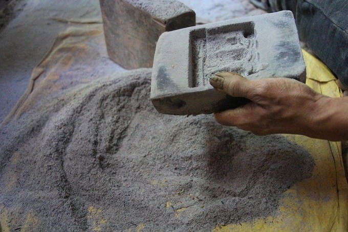 Trước khi đúc tượng, người làng sẽ xoa vào khuôn gỗ một lớp tro để đất sét không bám chặt vào khuôn làm hư tượng.
