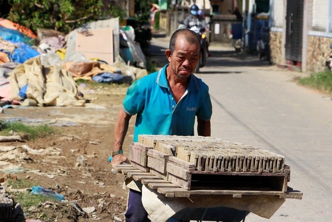 Ông Võ Văn Đức cho biết, mỗi ngày gia đình đúc hơn một nghìn tượng ông Công ông Táo để phục vụ Tết. "Cao điểm đúc tượng cũng là lúc xứ Huế mưa dầm kéo dài, gia đình phải xây lò nung, đốt bằng vỏ trấu cho tượng nhanh khô", ông Đức nói.