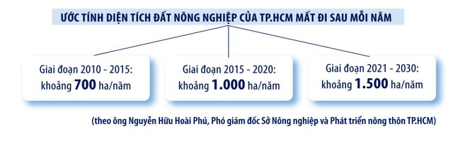 Và cũng bởi vậy, nhiều nông dân ở TP.HCM không còn giữ đất nông nghiệp, tình trạng đất nông nghiệp bị phân lô, xẻ nền báo động đến mức, đầu năm 2022, tại chương trình Lãnh đạo TP.HCM gặp gỡ, đối thoại với cán bộ, hội viên nông dân, ông Võ Văn Hoan, Phó chủ tịch UBND TP.HCM phải khuyên người dân rằng: “Bà con nông dân giữ đất, đừng nghe tin đồn hoặc vì thị trường hiện nay mà bán rẻ, ‘bán lúa non’. Bà con hãy cố gắng giữ được càng nhiều càng tốt, để chuẩn bị cho bước phát triển trong tương lai của quận, huyện”.