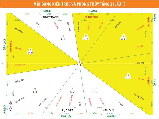 Mặt bằng kiến trúc và phong thủy tầng 1 (tầng trệt)