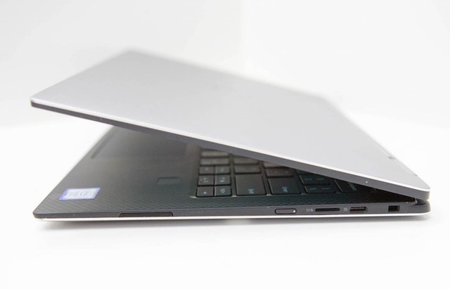 Tuy mỏng, XPS 13 vẫn được trang bị đầu đọc thẻ microSD, một cổng USB Type C hỗ trợ chuẩn Thunderbolt 3, một cổng USB Type C hỗ trợ DisplayPort, một giắc cắm tai nghe 3,5 mm.