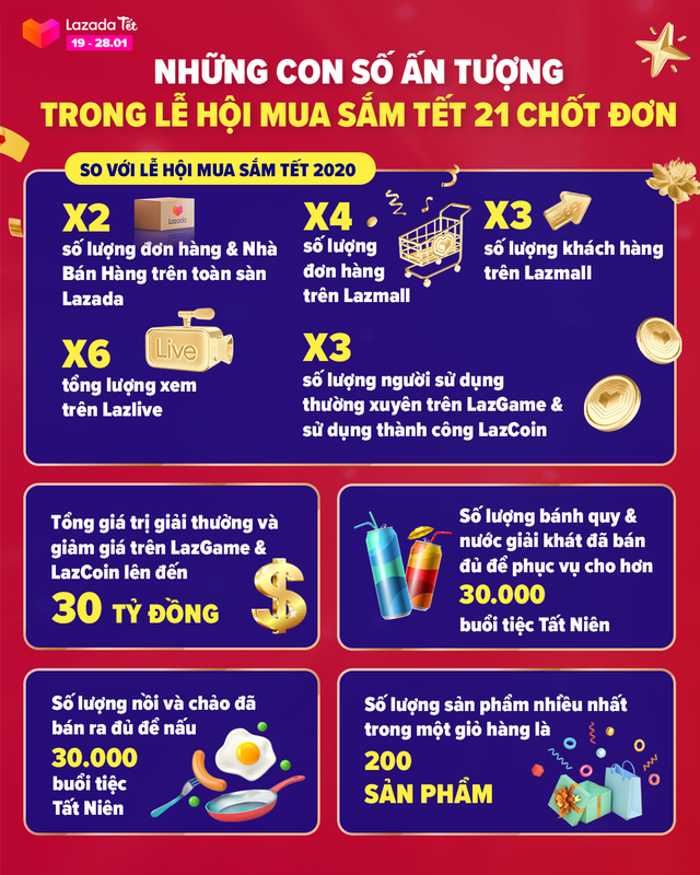 Đồng thời, hệ thống gian hàng chính hãng LazMall ghi nhận số lượng khách hàng tăng hơn 3 lần và số đơn hàng tăng hơn 4 lần.