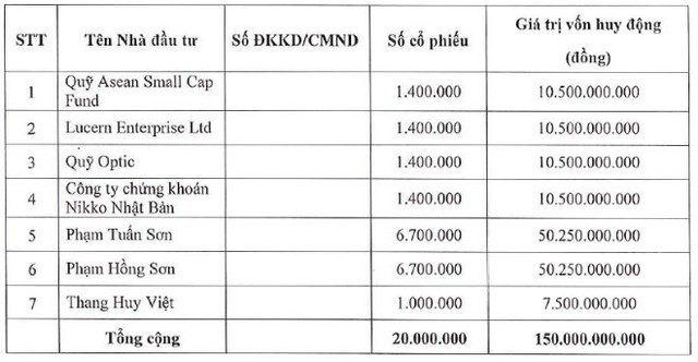 Phương án chào bán này đã được thông qua tại ĐHCĐ ngày 20/4/2014. Danh sách cụ thể gồm: