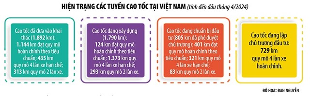 Trước đó, tại Công điện số 16/CĐ-TTg ngày 21/2/2024, Thủ tướng Chính phủ đã giao Bộ GTVT chủ trì, phối hợp với các địa phương liên quan khẩn trương nghiên cứu phương án đầu tư, nâng cấp các tuyến đường bộ cao tốc đã được đầu tư phân kỳ đạt quy mô cao tốc hoàn chỉnh, phù hợp với tiêu chuẩn thiết kế, nhu cầu vận tải. Trong đó, người đứng đầu Chính phủ yêu cầu tập trung đầu tư sớm nhất đối với các tuyến đường bộ cao tốc quy mô 2 làn xe; đồng thời, rà soát bổ sung đầy đủ, đồng bộ các công trình hạ tầng trên tuyến (như hệ thống giao thông thông minh, trạm dừng nghỉ...); báo cáo Thủ tướng trong tháng 3/2024.