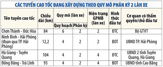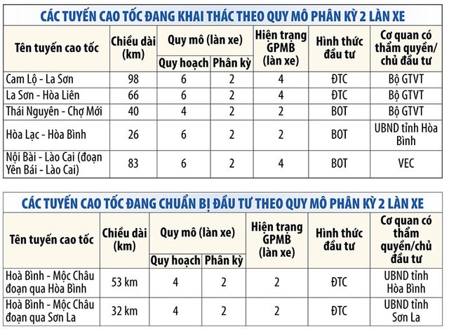 Tuy nhiên, đây vẫn chưa phải là phương án cuối cùng bởi Bộ GTVT đang chờ các đề xuất đầu tư, nâng cấp các tuyến đường bộ cao tốc đã và đang đầu tư theo quy mô phân kỳ từ các địa phương để tổng hợp, hoàn chỉnh báo cáo Thủ tướng.