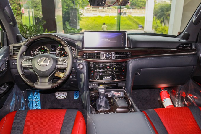 Thiết kế nội thất của LX570 Super Sport không thay đổi so với bản tiêu chuẩn. Không gian cabin sang trọng với các chi tiết bọc da, ốp gỗ. Phiên bản mới về Việt Nam sử dụng ghế da màu đỏ.